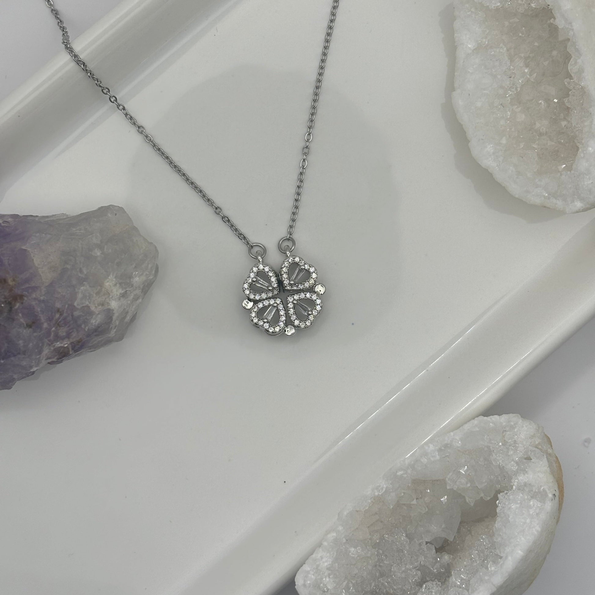 4 Leaf Clover Magnetic Silver Necklace