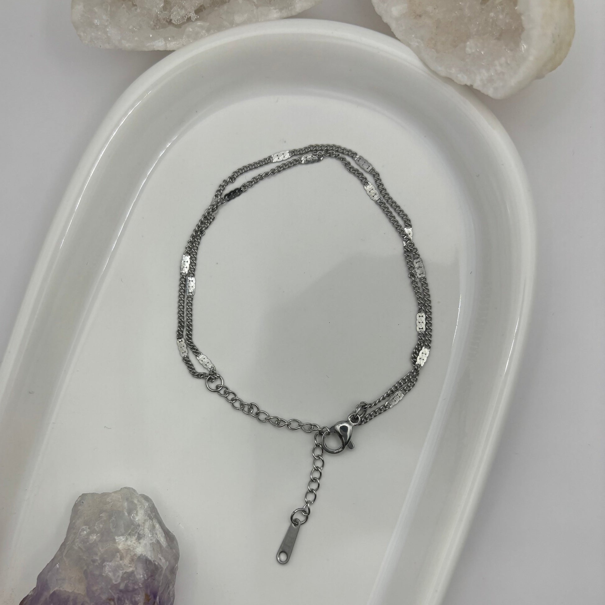 Silver Flat Chain Bracelet - Titanium Steel Plated
